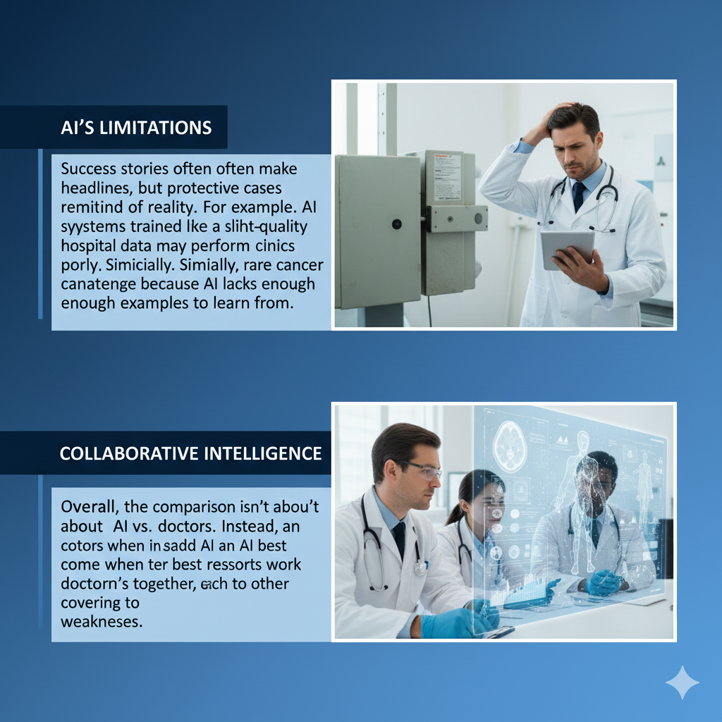Overall, the comparison isn’t about AI vs. doctors. Instead, the best results come when AI and doctors work together, each covering the other’s weaknesses.