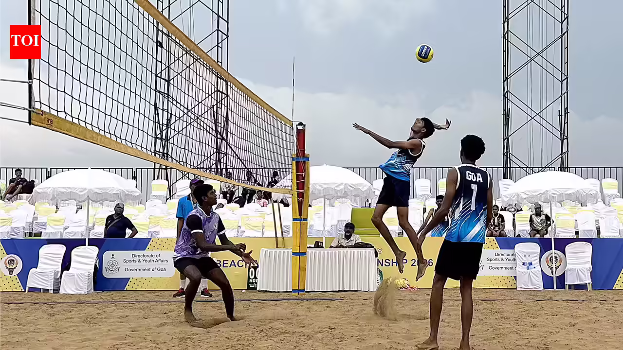 Panaji: With packed stands and VIPs in the gallery, the pressure on the young Goa boys was understandable.The 16-year-olds were playing in front of such a crowd for the first time, and watching them with keen interest was sports minister Ramesh Tawadkar. Had they not wrapped up the game in straight sets, even chief minister Pramod Sawant would have been in attendance for the marquee clash of the U-17 National School Games Beach Volleyball Championship in Miramar, on Tuesday.On the opening night, Goa were up against Andhra Pradesh and the hosts did their reputation no harm with a straight-set 21-15, 21-19 victory to confirm their place in the knockout stage of the competition.It was a nervous win, never mind that Goa was clearly the better team. Narendra Vasudev Gaonkar (Mauxi, Valpoi) and Vedant Devidas Kavlekar (Santa Cruz) have the height and skill to thrive on the beach, but playing in front of a big crowd for the first time, they appeared overwhelmed.The shaky start allowed Andhra Pradesh to enjoy a lead but once the hosts found their feet, they were able to wrap up the first set at 21-15. In the second, Goa were again down by two points, and at 15-17, they appeared to have surrendered the advantage.However, a service error from Andhra Pradesh at that juncture, coupled with a block from Narendra and a smart drop from Vedant saw Goa pick up four points in a row. Goa then wrapped up the set and match at 21-18.It was Goa’s second win of the opening day, good enough for them to top group C and qualify for the quarterfinals.Earlier in the morning session, Goa started on a bright note as they swept aside the challenge of Puducherry 21-17, 21-9.Goa will now face CBSE in the quarterfinals on Wednesday.In the girls section, Goa had more to cheer after the home team of Deepali Kusta Gawas and Roshni Rama Gaonkar put it across Andhra Pradesh 21-17, 21-14. They are now almost certain to qualify for the quarterfinals, despite having a tough group-stage match to play against Tamil Nadu.All quarterfinals will be played on Wednesday evening, starting 4pm.
