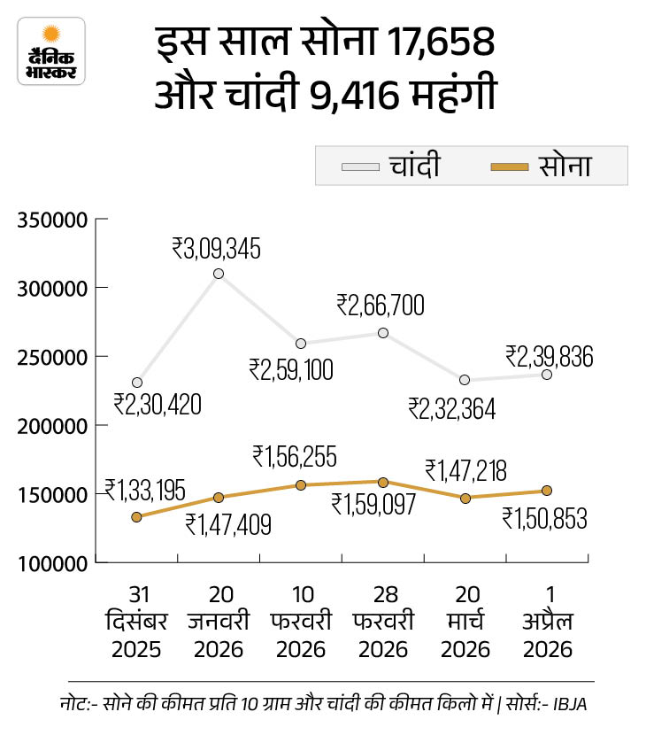 This year, there are continuous fluctuations in the prices of gold and silver. So far in 2026, gold has become costlier by Rs 17,658 and silver by Rs 9,416. During this period, on January 29, gold had made an all-time high of Rs 1.76 lakh and silver had also made an all-time high of Rs 3.86 lakh.