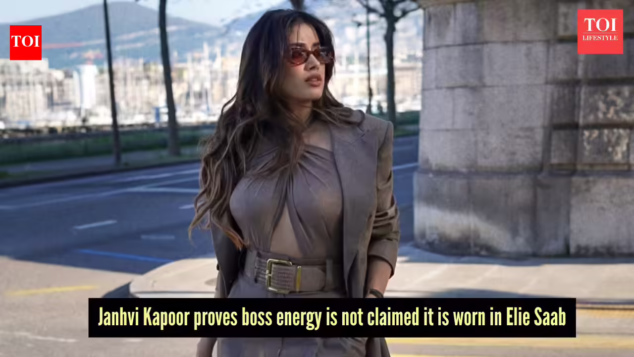 When it comes to fashion, you cannot compete with the Kapoor sisters. From Sonam to stylist Rhea Kapoor, the style throne has now been passed onto Janhvi Kapoor, who proudly knows how to walk into a room and own it absolutely effortlessly. And, this time, she’s not dressing for the boardroom, but she’s rewriting an entire aesthetic.Turning heads at an event in Geneva, she walked in looking unapologetic in a powerful, corporate-chic aesthetic with high-glam precision. Do not mistake this for your usual boardroom fit, as this Elie Saab ensemble is more than just a blazer with matching trousers. The diva wore the ready-to-wear SS26 collection, featuring a sleek taupe-toned monochrome co-ord set.