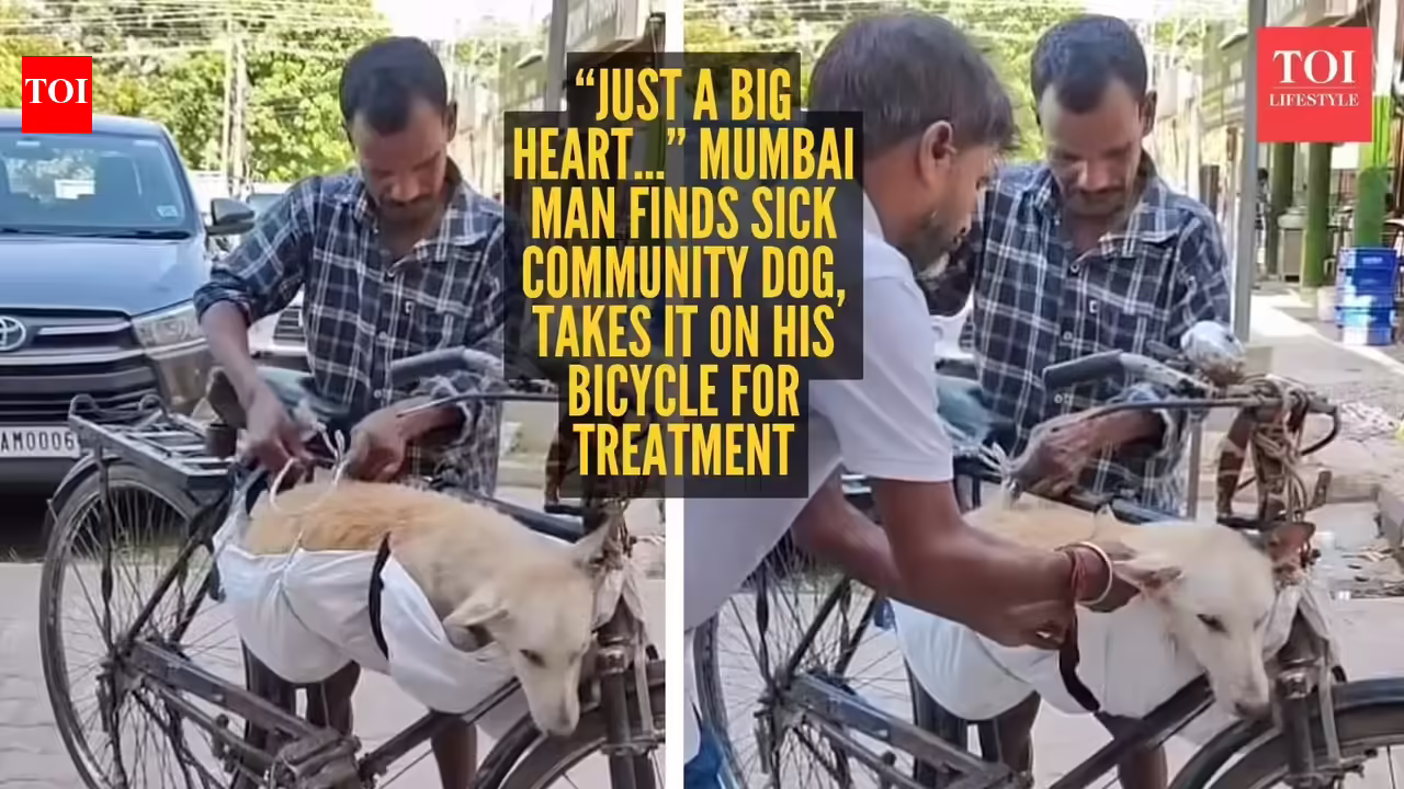 The video, shared on Instagram by Mumbai Police Inspector Sudhir Kudalkar, shows a man finding a sick community dog and deciding to act without delay.He carefully lifts the dog and places her on his bicycle. Without waiting for support or assistance, he begins moving through the streets to take her for treatment.