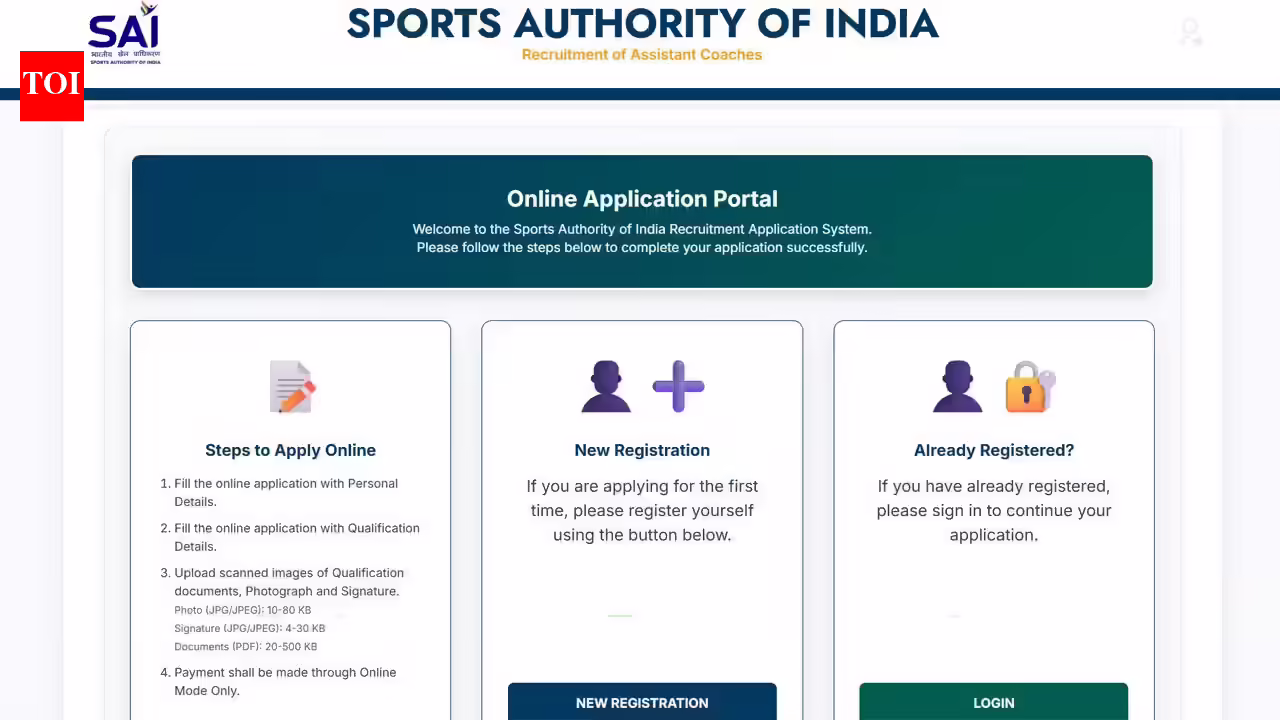 SAI recruitment 2026: : The Sports Authority of India has issued a recruitment notification for assistant coach posts across several sports disciplines, with the application window closing today. The drive aims to fill 323 vacancies under a regular Group B category, offering positions across multiple centers in India.As stated in the notice, the application procedure will start on March 23, 2026, and end on April 21, 2026. Application procedure for these posts will be through an online mode only using the website of the organization.Details of vacancy and eligibility criteriaThere is a total of 323 posts advertised for assistant coaches. For applying to the post, a candidate must be possessing a diploma in coaching from SAI NS-NIS or any other recognized institute. Besides this, participation in the Olympics, Asian Games, or World Championships, in addition to a coaching certificate, makes one eligible for the post. The candidates with the Dronacharya Award are also eligible for the same.For applying to this post, the upper age limit of candidates is fixed at 30 years as on January 16, 2026. The age relaxation clause is valid as per the norms set by the government.• Direct link to check and apply online for the Sports Authority of India assistant coach recruitment 2026Process of applying and chargesCandidates are expected to register themselves online and submit their photographs, signatures, proofs of identity, and proof of qualifications. The registration fee for applicants belonging to UR, OBC, and EWS categories would be ?2500. However, SC, ST, female, and ex-serviceman candidates have to deposit an amount of ?2000 as application fees. The fee should be paid only using online payment methods.Selection procedure and exam formatThe selection procedure has been divided into two rounds. The first round involves a computer-based test worth 40 percent and a coaching skill test of 60 percent.The written test will have a total of 100 MCQs that need to be solved in two hours. It would consist of subjects such as sports knowledge, sports science, logical reasoning, and general awareness. There will be a penalty of one-fourth marks for each wrong answer. Shortlisted candidates from the written test will appear for the next round on a 1:3 ratio.Provisions under the CorrigendumThrough the corrigendum, new provisions such as horizontal reservation of PwBD candidates and extended age relaxation have been included. It has also been clarified that a postgraduate diploma in sports coaching awarded by an accredited state university is acceptable as a qualifying degree.